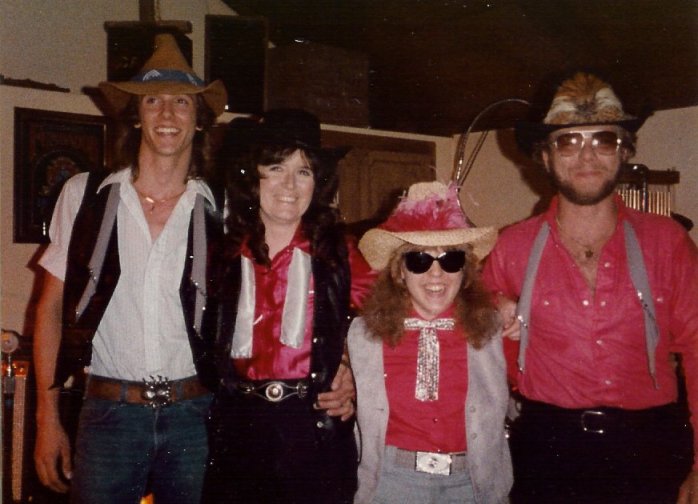 Your sister called... she wants her clothes back!!! Actually, I used to dress exactly like that in one of my late 70s early 80s band. Here is a pic of my last serious band: