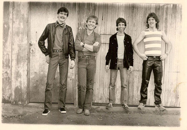 Johnny Quest, early 80's... I am second from left. This pic was shot in a back alley in Niles, CA by the drummers brother, who was a semi pro shooter at the time. Here he has just whipped out of his coat a Mickey Mouse camera, and said Cheese. We all busted up, and he took the pic. Not with the Mickey Mouse camera though!