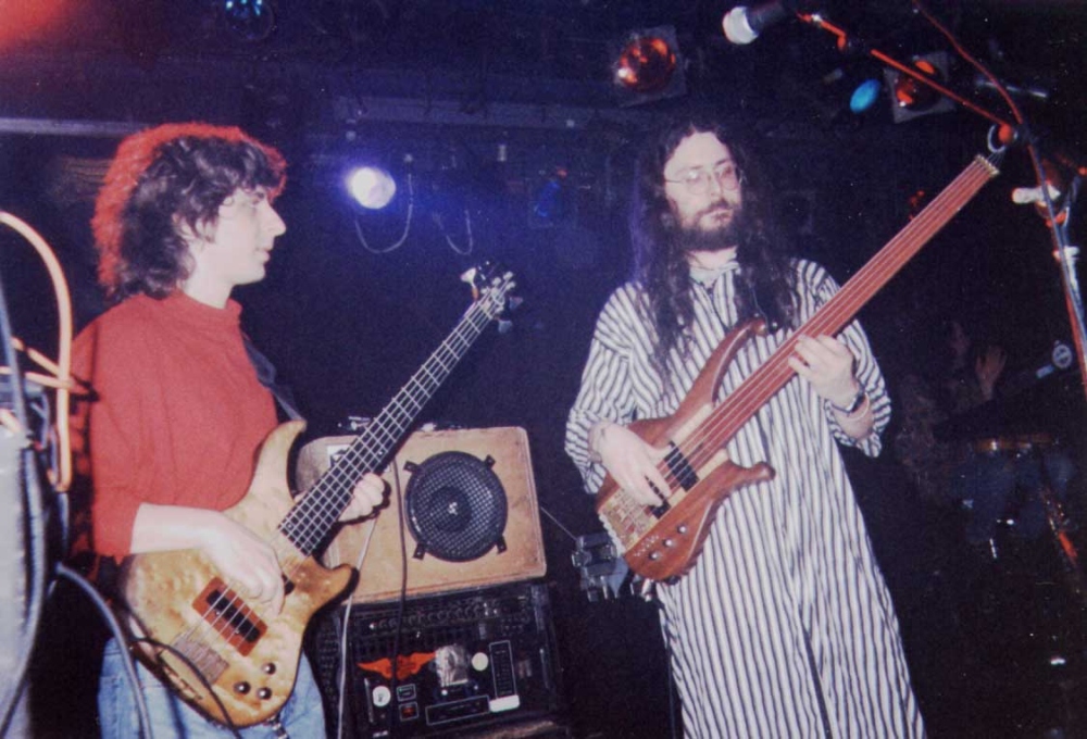 Well, it's not the whole band, but this is ca. 1993. Both basses are mine, a Ron Guliotta and a David King fretless.