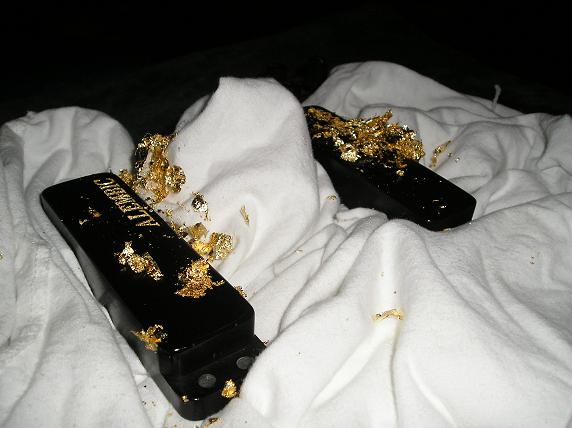 That took some of the leaf out, but it's mostly leaf, with a little gold spray paint that I sprayed into the lid - much more realistic than the gold model paint.