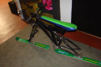 I just got finished putting together my downhill monster for this year. This is my third bike.Second Ironhorse frame. I went with low profile handlebars this time. I'm a little worried about going over the front on big air with this one so it will probably be a slalom racer. I have a rock shock pro 7in for the front that I will put on next week. Pow-Pow!