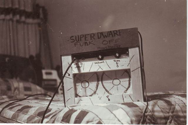 The world famous MagicMaster SUPER DWARF guitar amp prototype.  Using the circuit from a famous Sears Catalog guitar amp, the custom made case made from exotic woods sports the telling FUNK OFF badging, versus the long lost FUNK ON version who's existence some claim to be an old wives' tale.  Don't be fooled by the grille cloth, the speaker is (was?) the famous Delco 6x9 most notably used in the front dash of a 1974 Chevrolet Impalas.