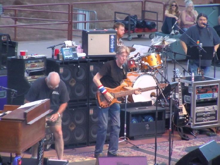 I've noticed that Rock bands tend to put the backline behind the drummer and jam bands put them in front of the drummer (that rack is nearly covering up the drums!!!).  Just a random observation...