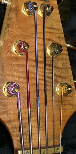 These are the strings that were on my new bass. Can anybody tell me what they are? Interesting that the silks are the same blue on the bridge end, but all different colors on the headstock end!