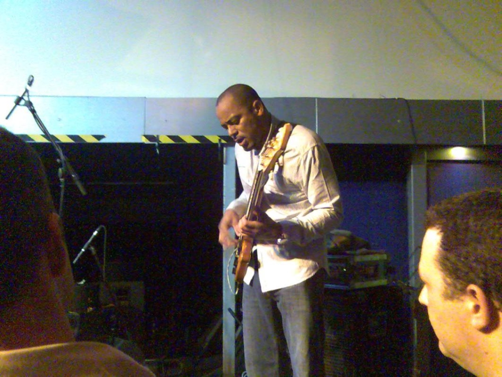 During the night, Mark played 2 custom Status King basses - one walnut topped with Blue LEDs and the other a quilt maple one with Green Leds.