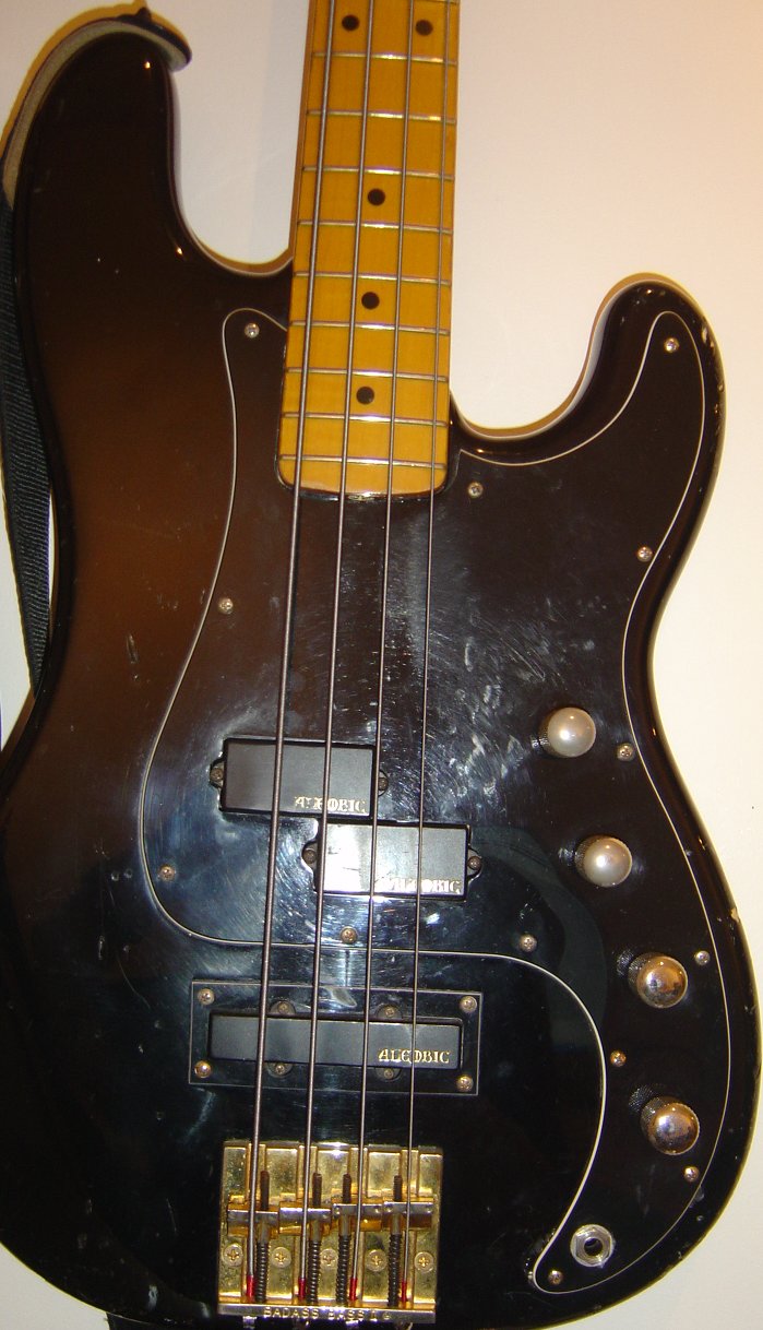 Here's the thread that I originally posted the bass in, but I'll run it down quick (yeah twist my arm to talk about my basses!) - I actually asked to have the pickups wired completely separately. So he used a jack plate from a fake Rickenbacker. One is the passive humbucker all by itself, with no tone knob. I hate passive tone knobs, never ever use them. So that's the single chrome knob. Then, the Alembic pups are the other two knobs, volume and filter. It's a great bass, an early-mid '70s Telecaster, big fat neck, strung with flats. Here's a couple of soundclips (that are also buried in the other thread):