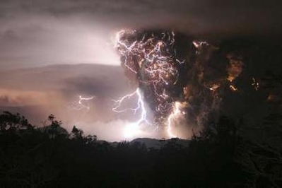 This was a recent volcano in Chile. All that stuff spewed into the sky apparently reacts with lightning in dramatic ways, described here as a