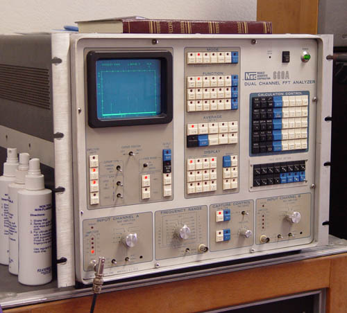 The FFT in our showroom doesn't have ethernet, it's just the signal input. The book on top has some observation notes. It does have a serial output, and you can control everything by a remote computer. That's phase II.