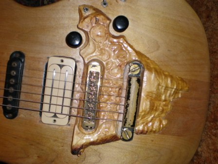 Here's what I did with a couple of my guitars after removing the kahler...the rock maple slabs let my hand rest just over the bridge... the more carved piece  wasn't really  necessary ; it adds to the artsy-ness of it all and the little ball shape is great for my pinky much like a banjo player uses the pinky to stabilize the right hand.
