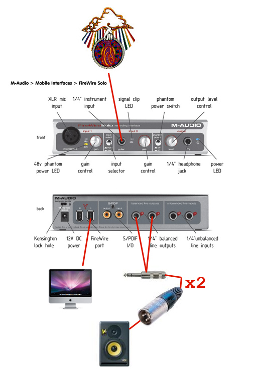 They have RCA to XLR if you want to go direct from your iMac.  Or if you get the M-Audio box they have MONO 1/4 to XLR.  (The outs on the M-Audio 410 are unbalanced tip/sleeve.)
