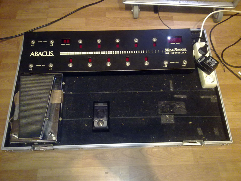 *Morley PWF for the Cliff and Jason sounds *Korg Pitchblack: not used very much, my Alembics all seem to stay in tune very well :-) *Mesa Abacus midi controller to switch between programs on the Rocktron and TC Electronic That thing is build like a tank, wears the Mesa/Boogie name proudly :-)  And here?s one brave Cat: