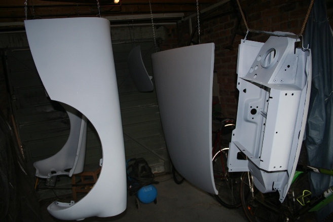 in fact, here's a pic of the loose panels just after I sprayed them. Definitely not a bugeye bonnet ;-)
