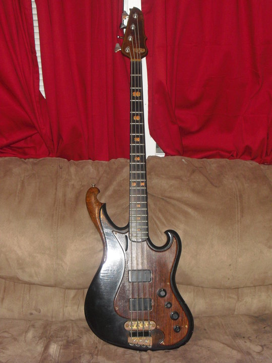 I have a bass that I bought from a bass music store called Bassalone out of California. It is suppose to be a Becvar 4. It has the same symbol on the headstock as the others I've seen, but it has a different style body and head stock. It has a black lacquer finish with a wood grain upper cutout extending out of the lacquer finish. It has EMG active pickups and brass inlays. I was wondering if you might have any further information about this bass. Feel free to email me.