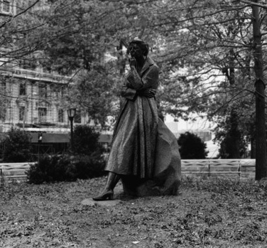 The figure is bronze, made originally in terra cotta, and about 15'. It is in Riverside Park in New York. It's the first public statue of a first lady in the country. More shots here: