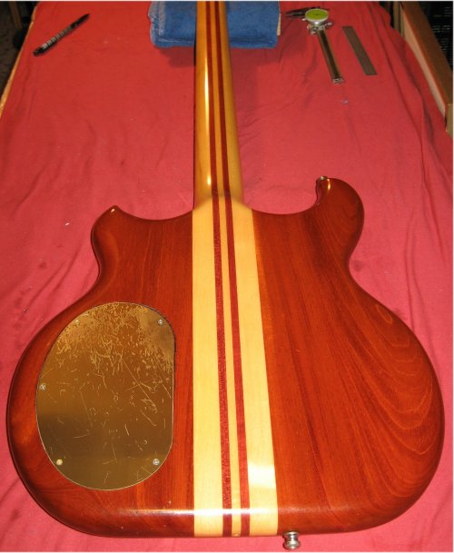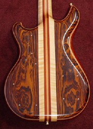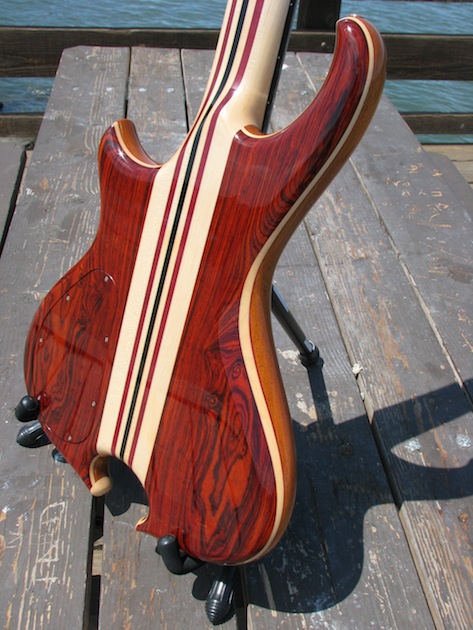 So far when I'm shooting her in open sunlight, my bass photographically renders with too much red in the cocobolo and reduced contrast in the exotic cat/Jovian atmosphere wood grain patterns. When she's in her open case in my poorly lit studio, she looks much more stunning than in these shots. I'm seeking ways to duplicate that look in my photos -- both with natural and artificial lighting techniques.