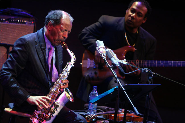 When I him in Portland last year he had 3 bass players and a vibes player. Very cool show. At that time the fretless bass player was playing an Essence 5 string fretless. I love the way Ornette plays trumpet like Miles. Although I heard it drove Miles nuts. I think it's cool that the old cat still picks up new things and incorporates them into his show!
