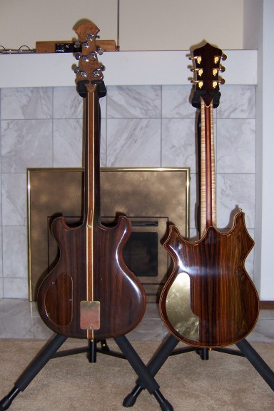 It was on consignment. The asking price was $4995 (which itself blew me away when I first saw it at the show). When I plugged it in there was no sound. I opened up the back and found a battery, but no battery clip! The seller contacted the owner who said he had removed the clip as he was powering the guitar with phantom power through the effects loop. Everything looked o.k. otherwise. I explained that I was buying a pig-in-a-poke as I had no assurance the electronics worked and asked if he might come down on the price. He came back with $4500 and I jumped on it. I subsequently spoke with Mica and she remembered when the original owner called her up and got the info on how to power it this way. I'll be bringing it up to the mothership soon to have everything put back to normal. I beieve this is the 8th Tribute made. Notice the lack of a separate battery cover - the battery fits in the main electronics cavity.