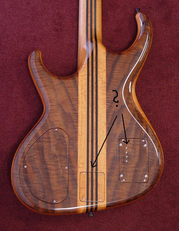 Hi Guy, This is the back of a Series instrument.  The cover by the strap lock is for two nine volt batteries for use when the power supply is not used and the cover with the additional holes is for the Series circuit board (the holes are used for access to the trim pots used for pickup gain and hum cancelling setup procedure - see here). Best, Art