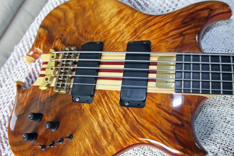 That's a very dramatic top wood on that bass it almost looks like energy radiating from the pickups, bridge and saddle.