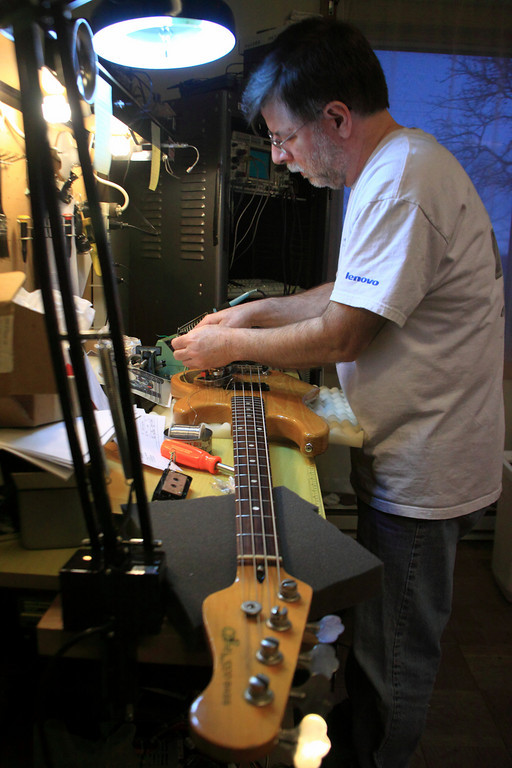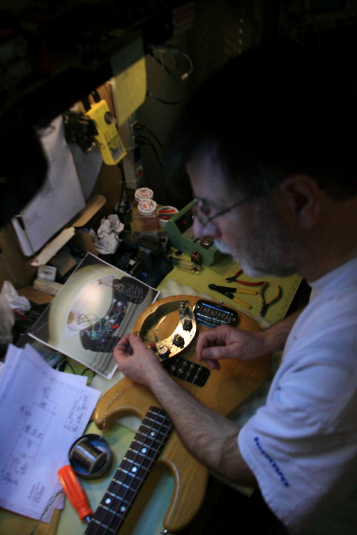 Just got back from my brother's place, where we installed the new pickup and rewired the beast.  I am amazed by the range of sounds that thing can make!  Also, since it's a bass/cut treble/cut tone circuit, I don't anticipate massive EQ adjustments every time I switch instruments.  Looking forward to using this instrument alongside the Alembic..
