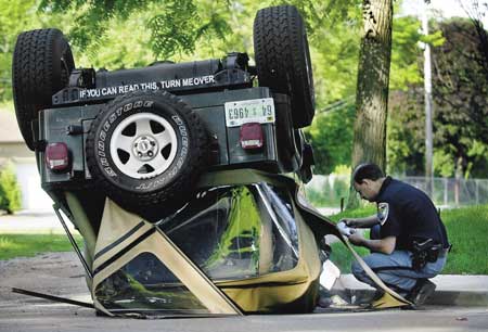 Not a great bumpersticker but, rather, my all-time favorite juxtaposition, was the guy I saw with a No Jap crap for this American sticker proudly displayed on the spare-tire cover of his...Suzuki Samurai!  I don't know if the placement was a brilliantly subtle & ironic mockery of the mindset behind the sticker or a case of complete idiocy, but it's stuck in my mind for over a decade now.