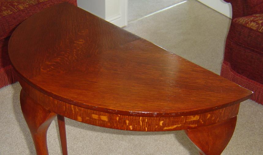 Thnaks for the comments, this table was covered with some awful red wood stain which required me to chemical strip and the top veneer was beginning to lift so I had to re glue and do some filling with wood dust and glue.