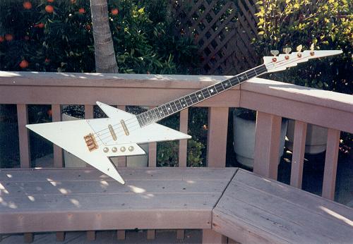 Buildt by english luthier Peter Cook after Johns idea on the cover of Who by Numbers. Currently beeing re-buildt by Ed Roman for the John Entwistle Foundation.