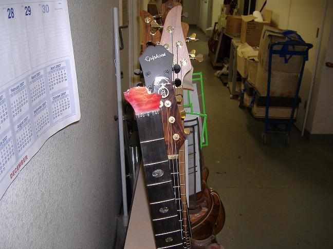 The last pic show a very ill guitar, obviously awaiting treatment from the wood doctors