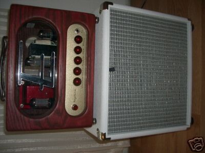 I'm using the cab that came with it so far.... The amp is as close to whisper quiet as you can get,...then loud and crunchy like steve miller or joe walsh. It's brighter than my 65 ampeg jet, ...same sorta mojo,with a very smooth tight high end with a bit of swing to the lower frequency crunch.I'll have to try it with an open back cab. from the auction: "Boutique "Custom" Electrosonic Hand Built Point-to-Point CLASS "A" Neptune Model, 2 Telefunken EL34 power tubes ? "25 Watts" , Philips 6SL7 preamp tube , Rectifier Tube : JJ/Tesla GZ34 Solid Oak Cabinet, oversized Transformers (Standard Neptune is 15 watts w/6v6 tubes) (master,gain,treble,mid,bass) cab:Custom 9 ply Solid Baltic Birch ?1 x 12 "