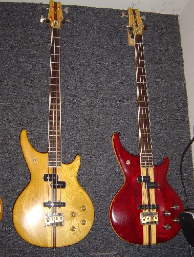 Was tickled to find it, this completed 'the Trio'. Yamaha made the original BB5000 in the mid80s, probably the first production 5 string (along with Peavey's DynaBass) that those of us who WEREN'T Jimmie Johnson could find (this is way before I ever thought I'd own an ALEMBIC) out in the rest of America. The neckthru Yamahas were as close as I could get to ALEMBICs in East Texas! They were Fender shaped neckthrus, passive P(3/2) & J pickups, gold and brass hardware, MOP oval inlays (wonder where they got THAT idea?), striped ebony fingerboards, in that aged 'TV White'. Fives were a new thing then, so it was basically their four string neckthru (BB3000) with five string hardware, same width neck. In the late 80s this bass was upgraded to active electronics/pickups still in the same bass, the 'A' model in this purchase. There was a follow-on BB5000AII in the early 90s, the third memeber of the trio: Modified body shape, WIDE neck (after all the crybabies moaned and moaned about the narrow neck) and the new P/J active setup carried over later in the 4 and 5-string TRBs, as well as this neck width. I had the 5000 and the 5000AII and this A model would complete the trio, so I went for it as the middle version is REAL rare.