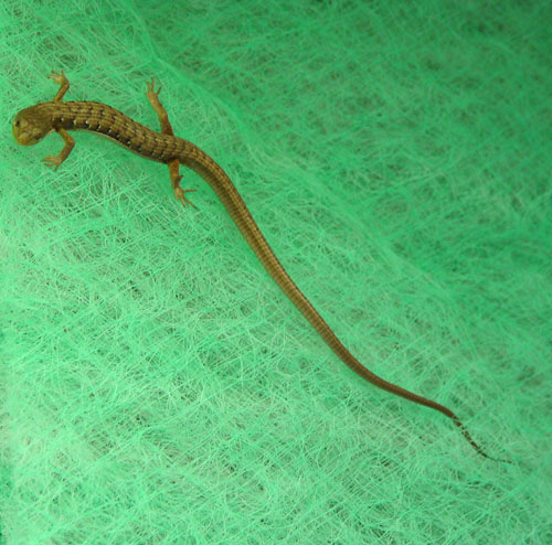 This juvenille alligator lizard must have gotten scared by the construction across the road. We let him run to the nearby field, which is likely to have more food available!