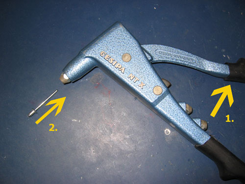 The rivet(s) you are using is like a ball headed nail in a tube (Barrel). When you start squeezing the handle, the nail is pulled into the tool, the ball end is pulled into the tube, widening the tube as it is drawn deeper. You keep pumping the handle until it pulls so hard that the nail end breaks off, leaving the ball end in the barrel, making the barrel snugged into the hole, which is now holding the two piece together it was slipped through.