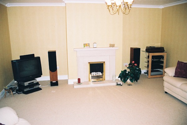 here's a photo of my living room, as you can tell, Mrs J has alot of say when it comes to ideal speaker placement ;-(