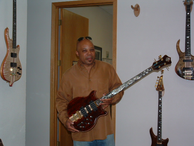 Me holding Stanley Clarke's new bass that will be presented to him this Friday at his concert in San Francisco. Please don't tell him though, I wouldn't want to ruin the surprise!