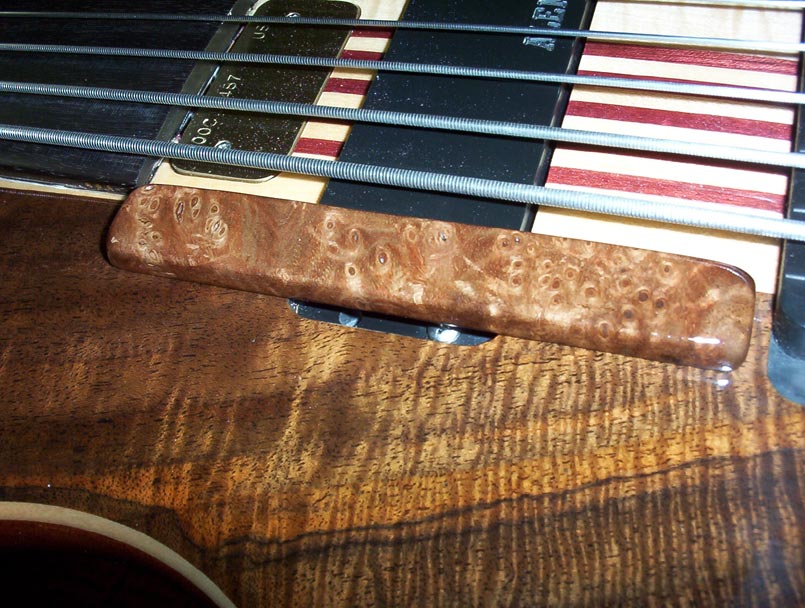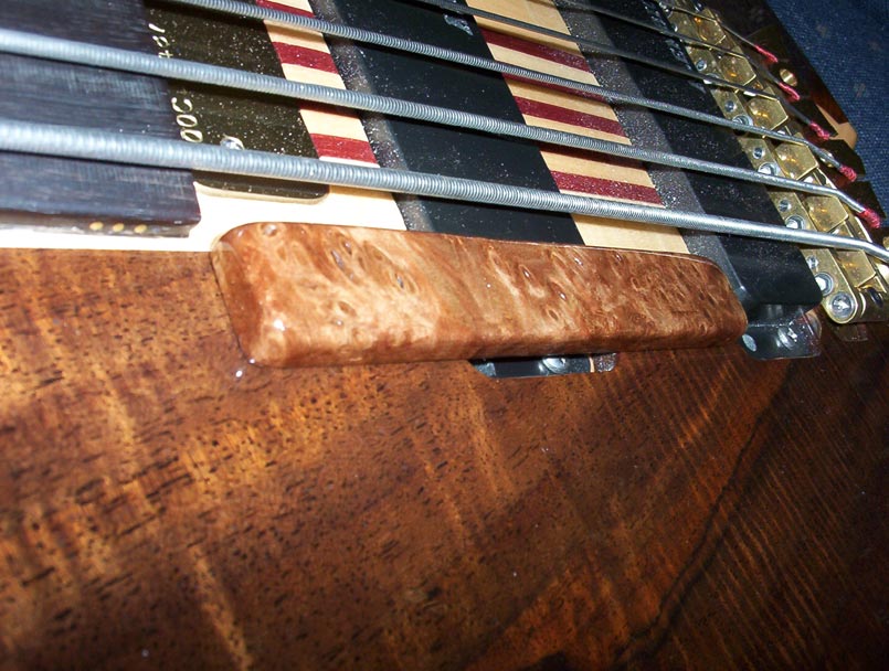 In this incarnation, I think it may be putting my thumb a bit too far away from the strings, especially the C string... so I'm making a slimmed down version from purple heart.  I'll post back in a few days with the results.