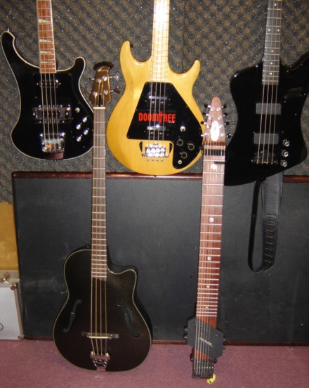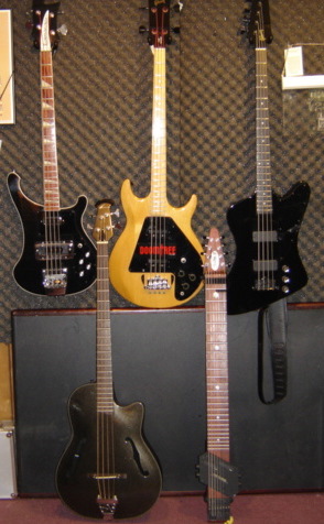 My non Alembic family:4003, prototype Ovation, Ripper L9S, StickBass, Thunderbird.