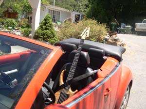 We have the obligatory Suburban (its in the CCRs for our community, I think!), but I got a Bam 210, since its usually just a stage monitor, and it fits on end in the front seat, my Alembic just fits across the back seat, and I don't need airbags because I'm wedged in! Do I need to use sunblock on my bass if I'm cruising with the top down?
