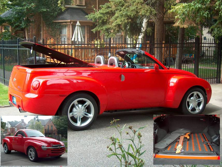 The Car:  It's a 2004 Chevrolet SSR.  300 hp 5.3L V8 (think Corvette with a truck bed).  That's a power operated convertible hardtop.