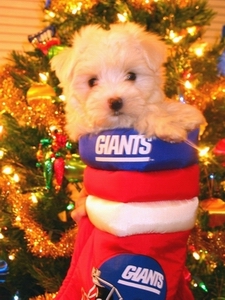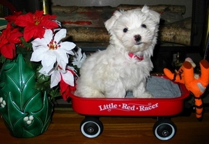 Nope, he's a Maltese. 9-weeks in the stocking (pic taken the night we brought him home), 10-weeks in the wagon.