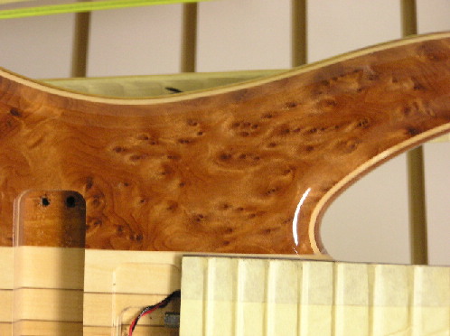 i dont remember whose bass thsi is, but i fell in love with the burl (redwood?) top. so much that i am having it put on the back side of my tribute.