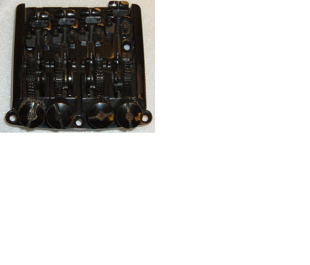 I am stumped.  I got this off an ebay bass project several months ago, and I can't for the life of me figure out who manufactured it.  It is definitely made to accept ball-end strings, so I assume that I would need to jimmy up something to handle the other ball end of steinberger-style strings, or clamp down the bare end of regular strings.  At first I thought it was a Kubicki bass bridge, but the saddles don't match, and neither do the knob layouts.  Any ideas?