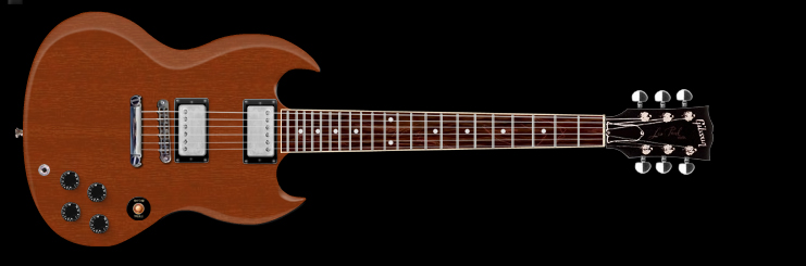 Let's see if I did this right; should be a modified 1971 Gibson SG.  The real one has a Stars Guitars Ming tailpiece.