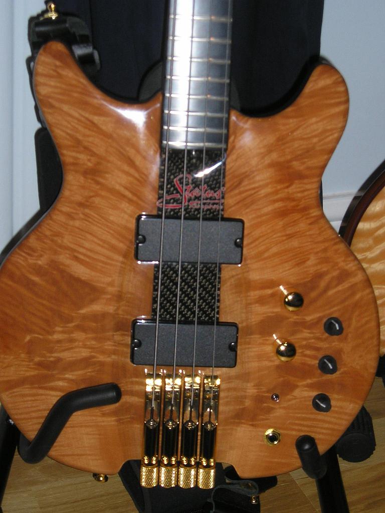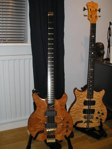 Here are the two basses I play besides my Alembic. I built them both and they both sound completely different. Rami, you would be proud of the one with the lacewood top as it is about 16 pounds