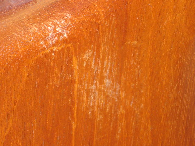 On closer inspection of the rash I don't think it is into the wood at all.  I think the whiter parts of the scratches are just where the finish is flaky.