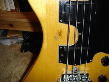 Folks,      I'm trying to sell a Gibson RD 77 Artist.  It's got a bunch of nicks and dings, a hole in it where the previous owner put a thumbrest in between the pickups, and a section near that thumbrest where there is a small hole (1/16th" deep) and the finish worn to the wood (about a half inch long, 1/4 inch wide).  The compression/expansion switch is finicky in the compression mode - you have to be gentle with it.  I've tried cleaning it, etc., but I'm not that good at that stuff.  It works, but you have to be gentle, e.g., just switch it back nice and easy, and it works perfectly.  The tone knobs are not original - the guy I bought it from misrepresented it on Ebay, and it had two Rickenbacker style knobs on the tone controls when I got it. I replaced them with two Gibson speed knobs.  The battery cover is not original - it did not come with one, and I had to fabricate a new one from pickguard material bought from Stewart-MacDonald.    The good news:  No cracks, breaks of any kind.  Frets are in remarkably good shape, and there is no buzz on the neck whatsoever.  Action is extremely low, even with the light gauge DRs I have on it.  Fingerboard is in good condition, neck is straight, truss rod works perfectly.  New Schaller straplocks too.  Case is in fair condition - it's beat up, but the latches all work.    Sound - this was Gibson's answer to Alembic.  The sounds that come from this thing are amazing.  The electronics were designed by Bob Moog of Moog Synthesizer fame, and it's fairly amazing.  Crisp and bright, funky and honky, this thing can do it all.    I can take additional pics those interested.  Asking $750 plus shipping.    Alan
