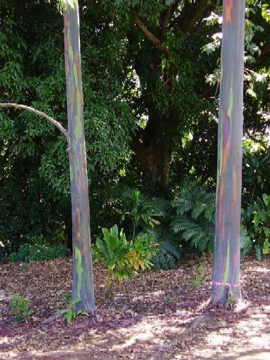 Looks like eucalyptus to me. I have a couple of photos I've taken myself, also on Maui. I'm pretty sure the colors are in the bark layers, so I don't think it would work out as you might like.