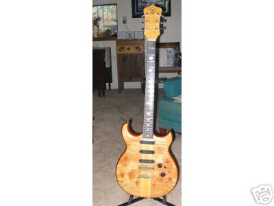 You should put some more pictures up in Showcase when you get a chance. The wood on yours looks very cool and unusual quilt/flame/burl maple? As you can see, mine has the two HB shape pickups. Also my electronics were modified in '93, I believe I was told, so I don't know how much advice I can give. You'll find that the guitar has a lot of sustain and is very sweet to play. Enjoy and it's great to have another six-stringer around here.