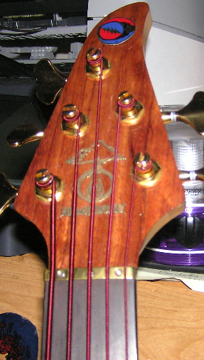 Hey Jeff.  Pretty strings that sound good!  Why don't you whip those sinister red strings off and model the pretty blue ones for us?  I'll give ya an Alembic sticker logo and an Alembic magnet logo!