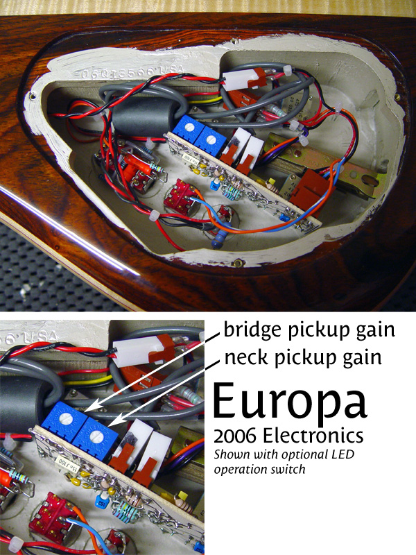 For models with 2 preamps (Europa, Rogue, Distillate, Spoiler) the trimpots for each channel are located on the main board: