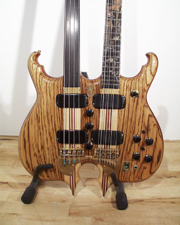 Who is the guy with the lovely doubleneck 8+4 from the SuperWound string ads of the late '70s?  I'm guessing there is a good story behind that bass..